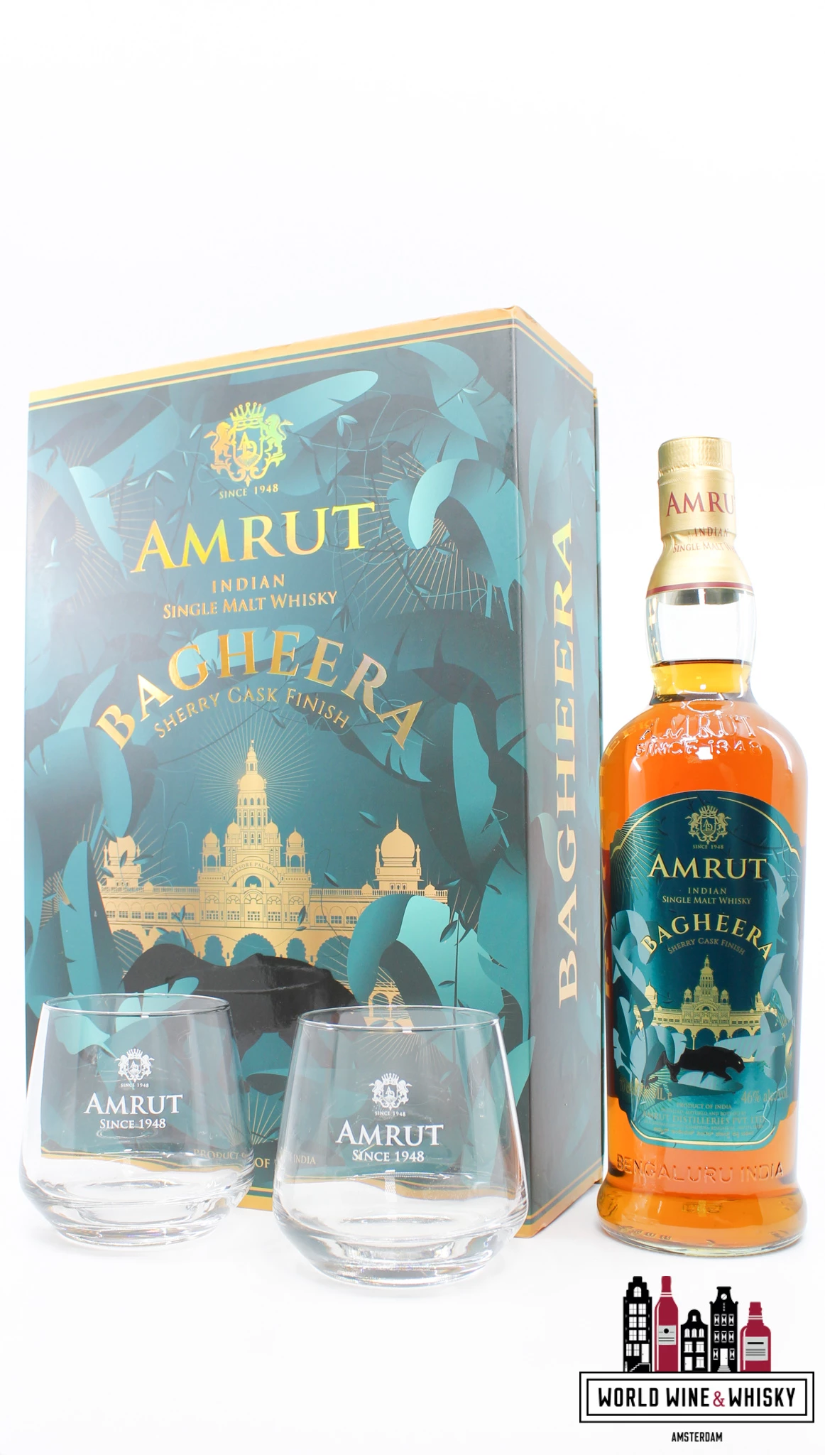 | Included original case: | Yes, included the original cardboard case and two Amrut whisky glasses |