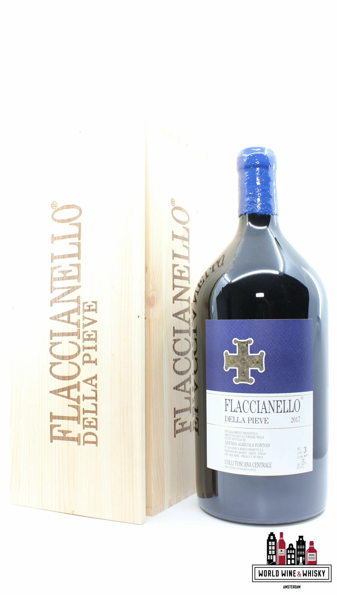“The Fontodi 2017 Flaccianello della Pieve is a standout wine of the dry vintage. This pure Sangiovese opens to a dark garnet color with more visible concentration and density compared to recent past editions. This is a beautiful wine with pliant tannins, dark fruit richness, balanced acidity and a fruit-forward 15% alcohol content. The wine is big and bold when weighed on the Flaccianello scale (and even more so when weighed on the Sangiovese scale) with dark cherry, plum, spice, violet, chalk and campfire ash. Despite that power and inner opulence, this wine adds that zesty Sangiovese character with fresh acidity and an energized approach. This Flaccianello is whole and complete with the natural firmness and structure to hold it steady during the aging process. A small part of amphorae-aged fruit is added to the blend: 96 Parker Points.