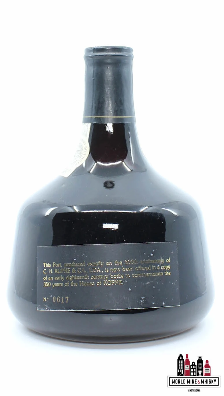 This Port, produced exactly on the 300th anniversary of C. N. Kopke & CA., LDA., is now been offered in a copy of an early eighteenth century bottle to commemorate the 350th years of the House of Kopke.”