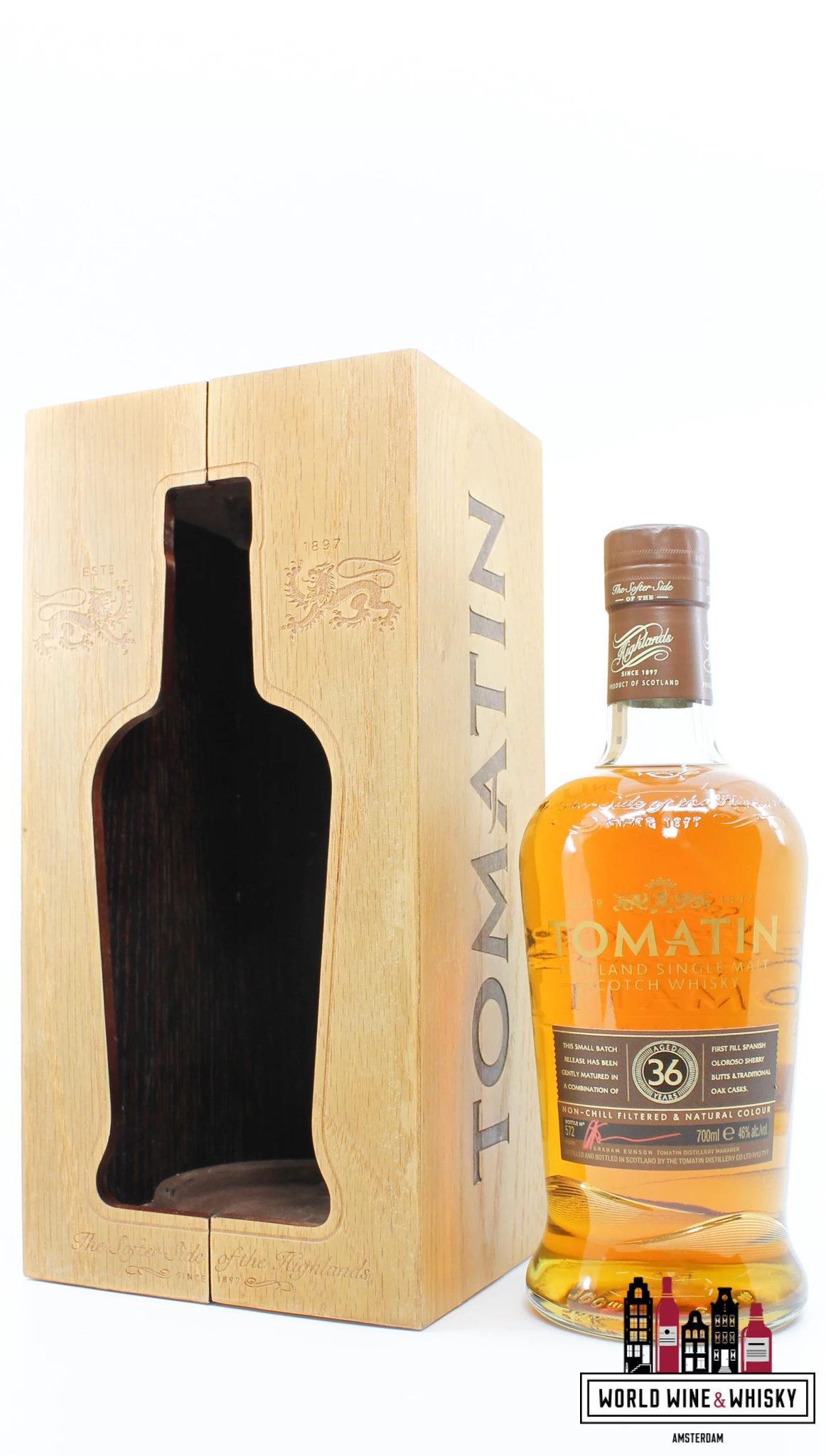 | Extra information: | A stunning and very hard to find 36 YO whisky from the Tomatin distillery. A good investment too! |